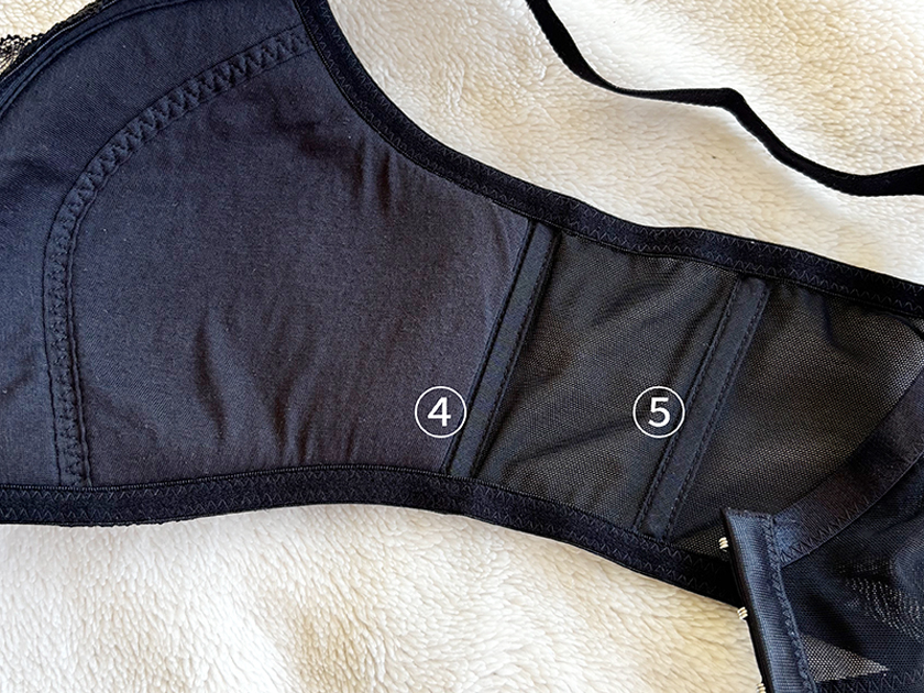 ②と③は、ワイヤーよりも柔らかいサイドボーンを使用しています。しっかりと支えてくれるパーツです。